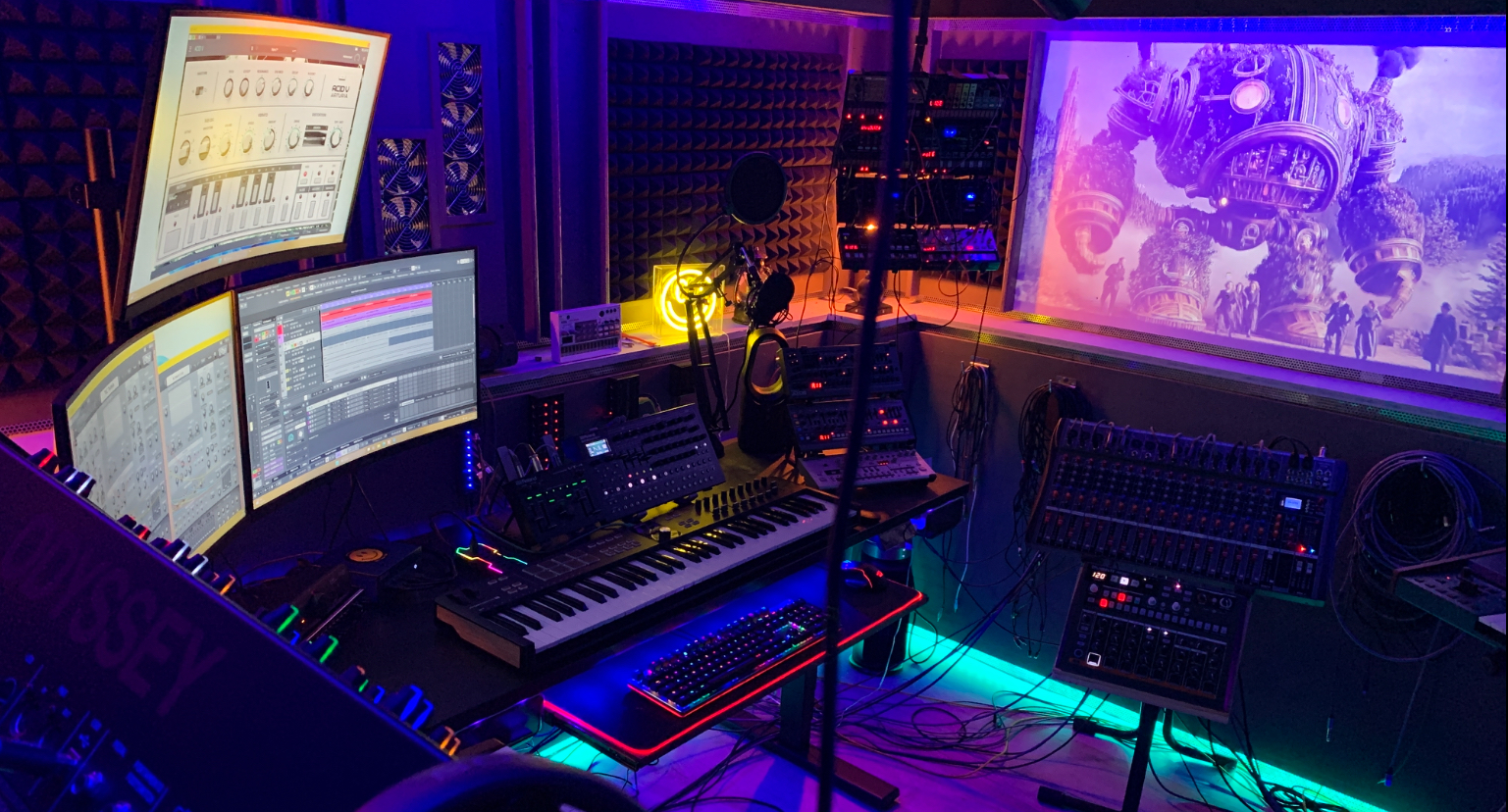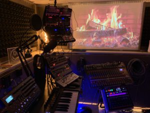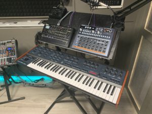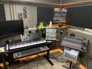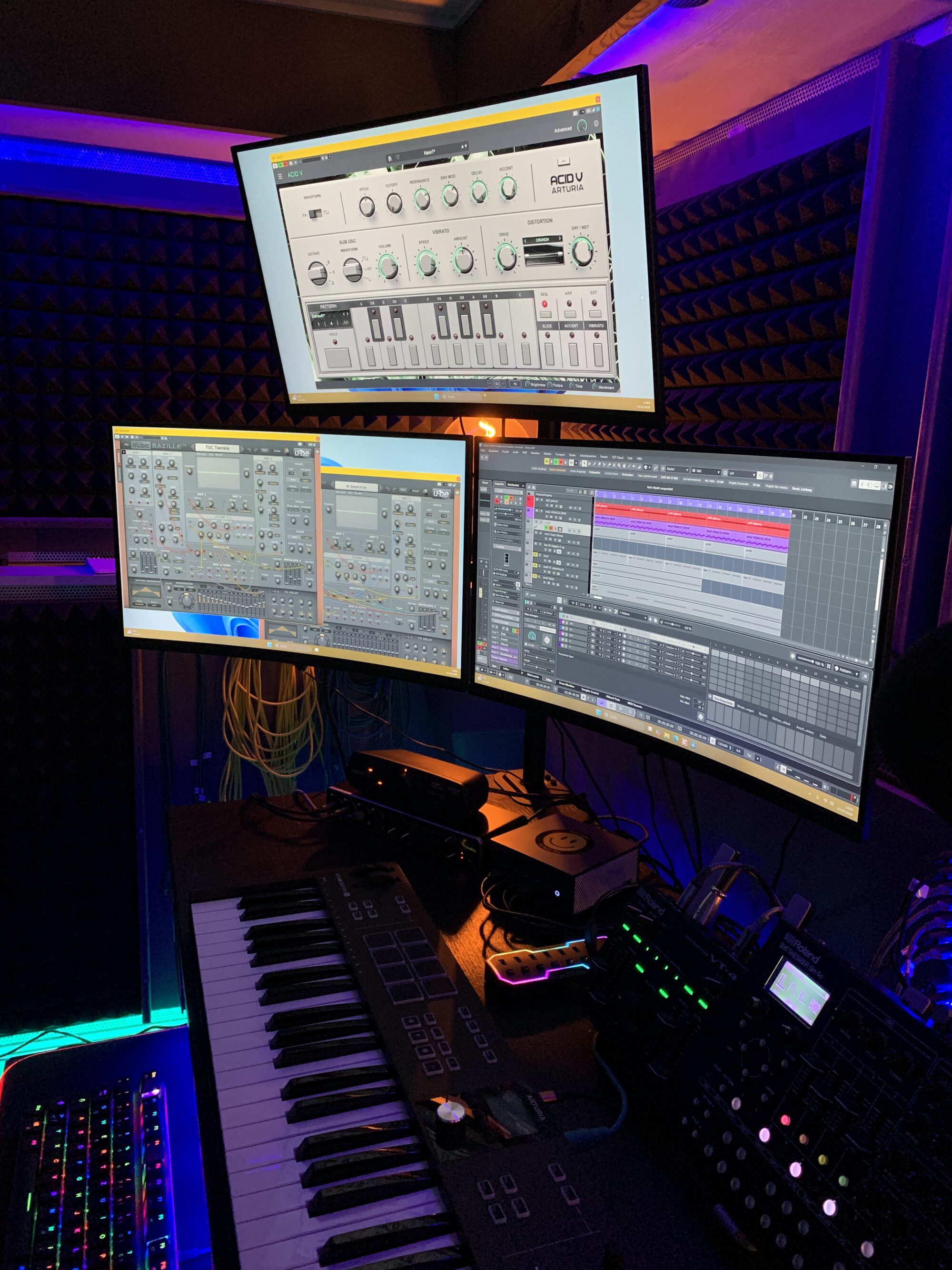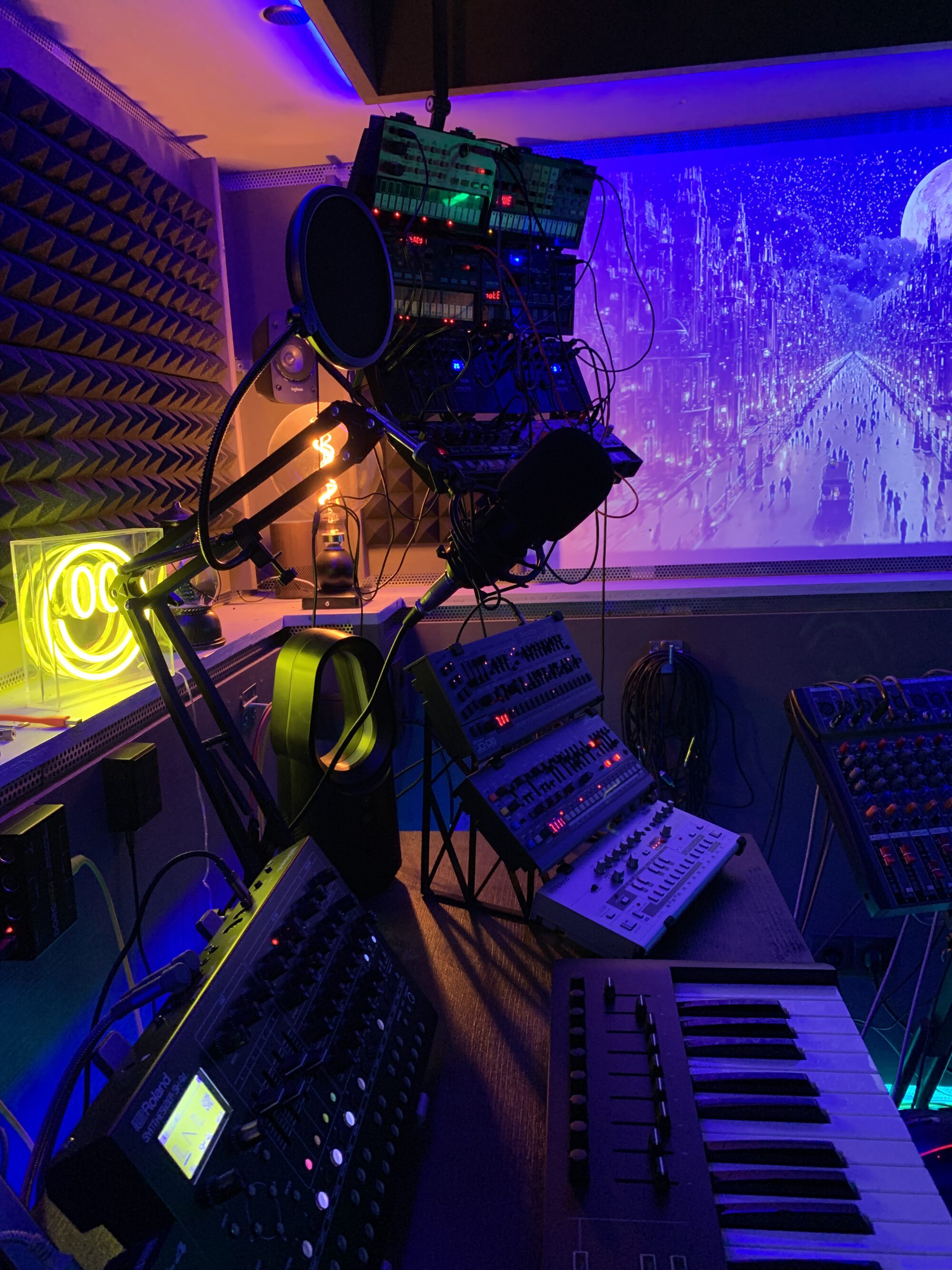 Roland TB-03, Roland JD-08, Roland JP-08, Roland SH-4d, Roland VT-4 Vocoder, Behringer Deepmind 12, Behringer ARP Odyssey, Behringer UB-XA ( Oberheim Clone ), Behringer TD-3-MO, Behringer TD-3, Behringer RD-6, Arturia Keylab 61 ( Masterkeyboard ) , Arturia DrumBrute Impact, Korg Volca ( Bass, Beats, Sample, Nubass, FM, Keys, Kick, 2 mal Mix ), 16 Kanal Audio analog Mischpult, Steinberg Cubase 14 Artist Sequenzer Software, Aufnahmemikrofon für Vocoder